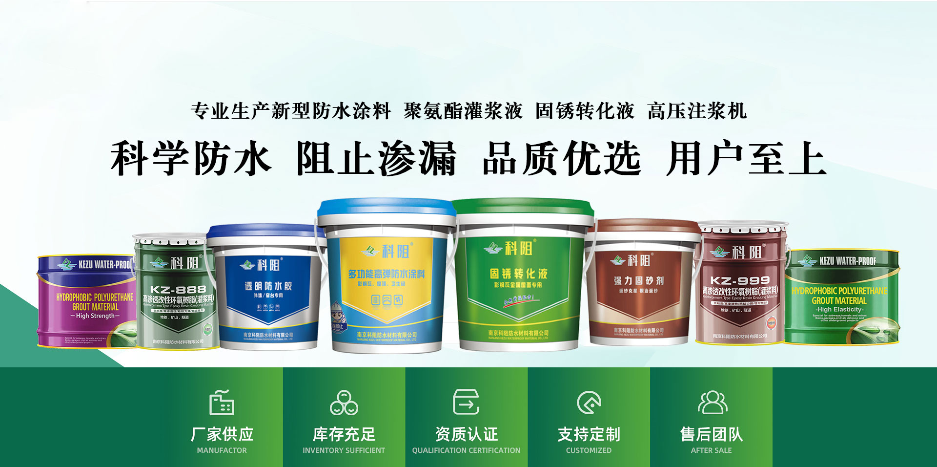 01 科阻品牌堅守20余年,產(chǎn)品種類繁多。防水涂料、鐵銹轉(zhuǎn)化劑、注漿機等配套一應(yīng)俱全。